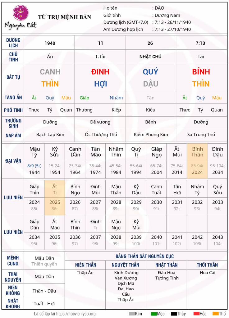 - Phản hồi thực tế: Hoàn toàn chính xác! Mệnh chủ đã xuất gia vào vận Đinh Sửu, năm Canh Thìn.